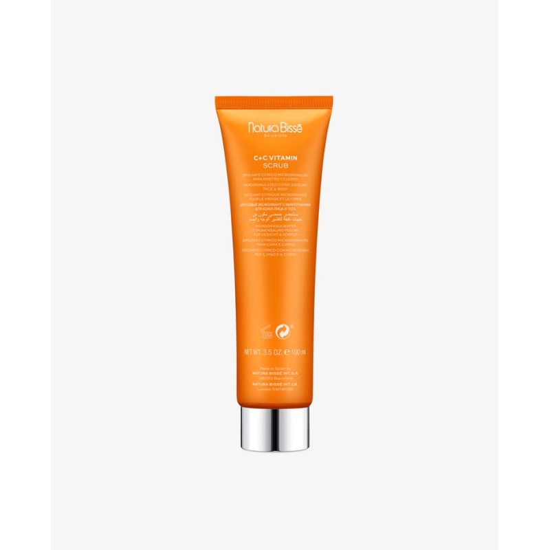 Нашият C+C Vitamin Scrub осигурява цялостно обновяване на кожата благодарение на нежната, но ефективна формула, съдържаща семена от шипка и екстракт от горчив портокал , богат на алфа-хидрокси киселини (AHA). Този скраб за лице и тяло ексфолира повърхността на кожата, като същевременно обновява епидермиса и видимо намалява появата на тъмни петна и пори.