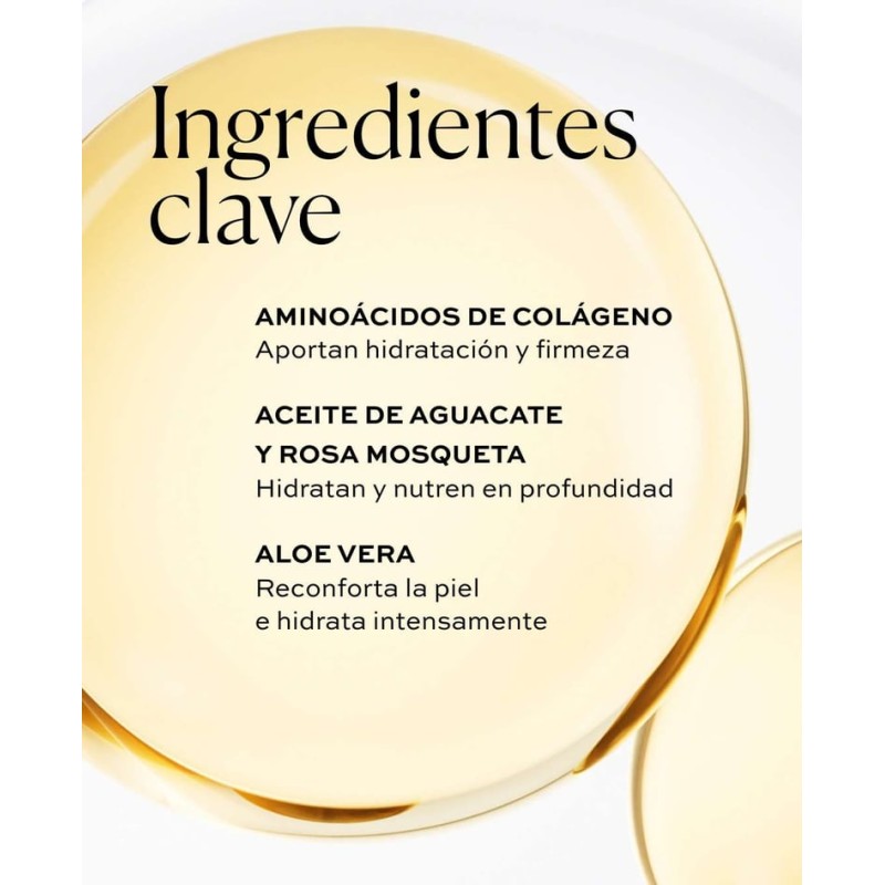 Освен това включва колагенови аминокиселини за подобряване на стегнатостта и гъвкавостта, заедно с успокояващи активни съставки като алое вера.