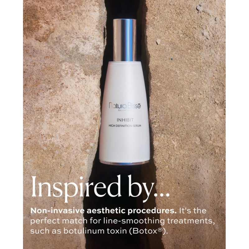 Inhibit High Definition Serum съдържа също комплекс от хиалуронова киселина с четири молекулни тегла, който действа на различни нива на епидермиса, за да задържа вода, да подобрява вида на бръчките и да повишава еластичността.