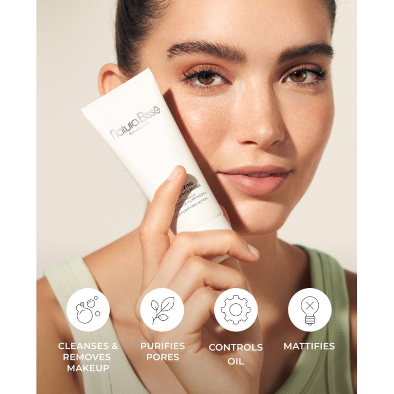Този многофункционален почистващ продукт и маска е некомедогенен продукт, който помага за премахване на замърсявания и грим, като същевременно пречиства порите и изглажда текстурата на кожата.