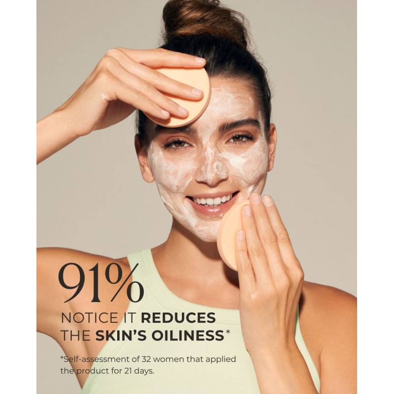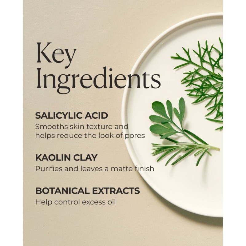 Формулата съдържа съставки като чиста салицилова киселина, за да обнови нежно вида на кожата, както и растителни екстракти заедно с алое вера, за да матира, без да оставя усещане за сухота или опъване.